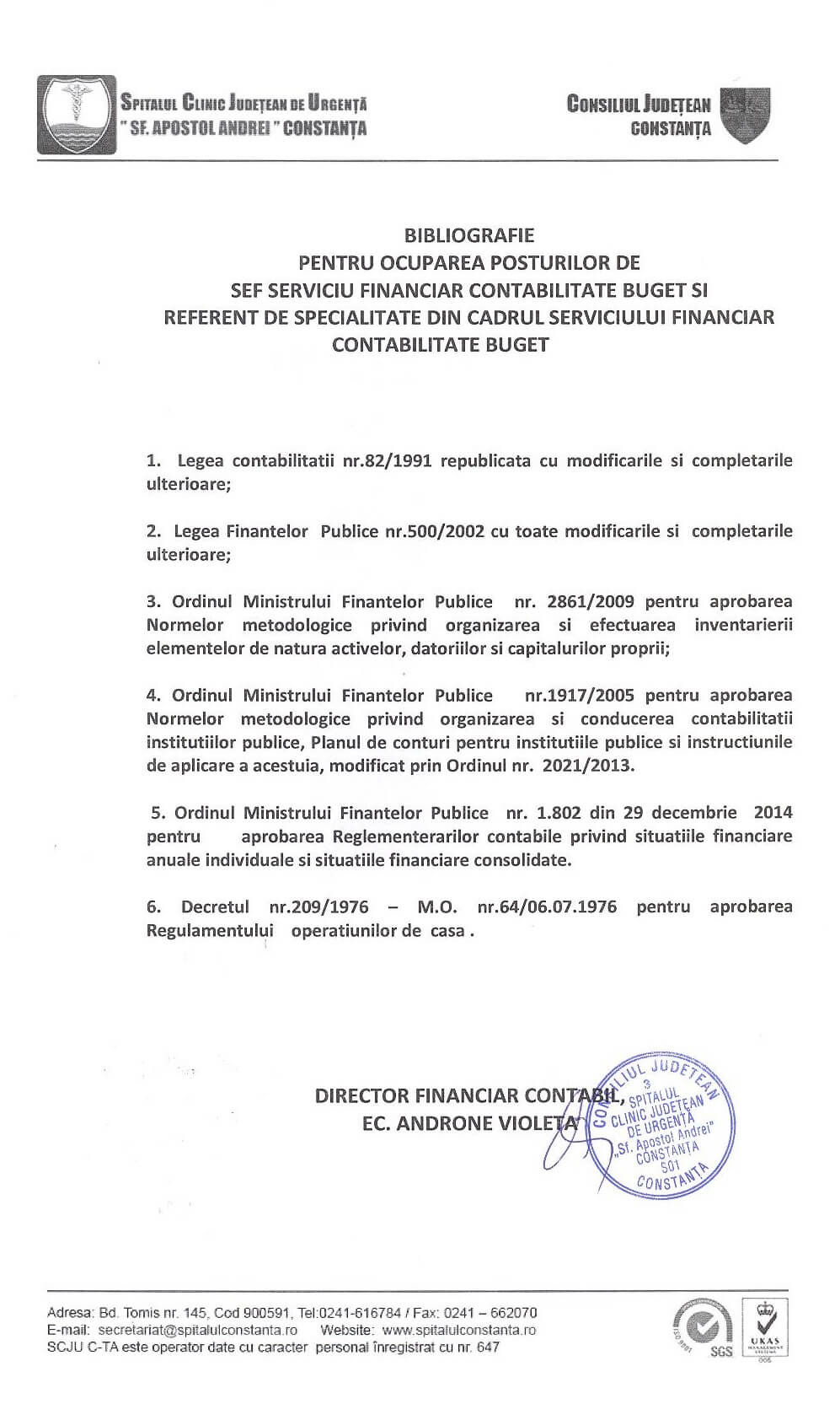 Bibliografie posturi sef serviciu financiar si referent specialitate