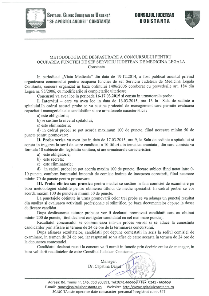 - Anunț rezultate finale concurs Manager – persoană fizică SCJU Constanța