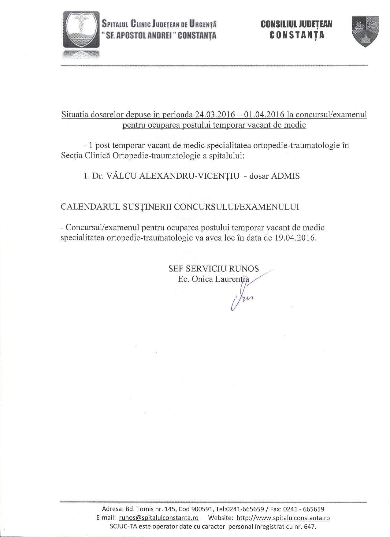 Rezultatele dosarelor pentru postul de medic specialist ortopedie-traumatologie